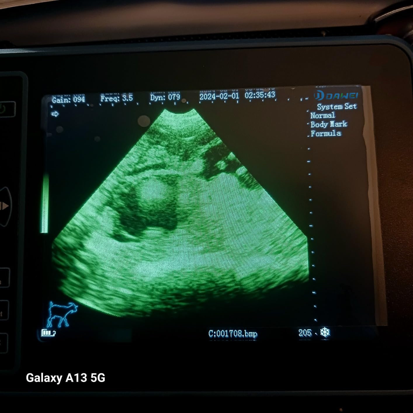 "My niece gifted us with this amazing ultrasound! The pic is the first time use of the ultrasound on a goat that was due within 2-3 weeks. I did not expect to be able to count the number of fetus or get a gestational age as this was just practice. Seeing little hooves was SO exciting!